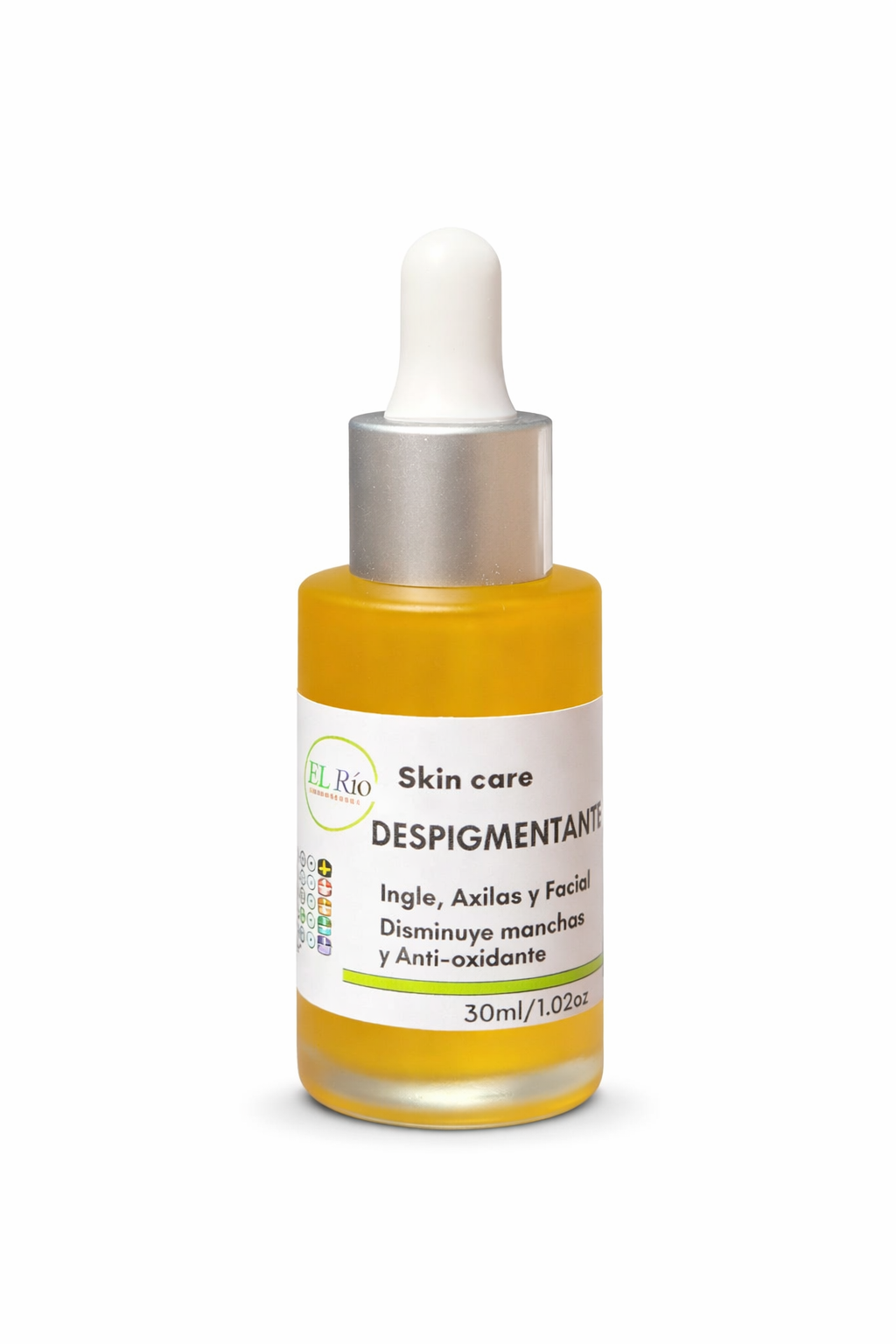 Nuestro aceite despigmentante es la solución natural para unificar el tono de tu piel y atenuar manchas. Enriquecido con ingredientes botánicos, este aceite nutre y revitaliza la piel, dejándola radiante y uniforme. ¡Descubre el secreto para una piel luminosa y sin imperfecciones!